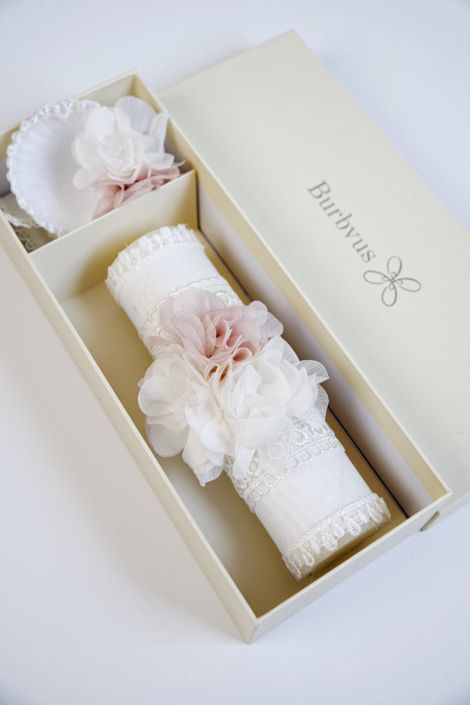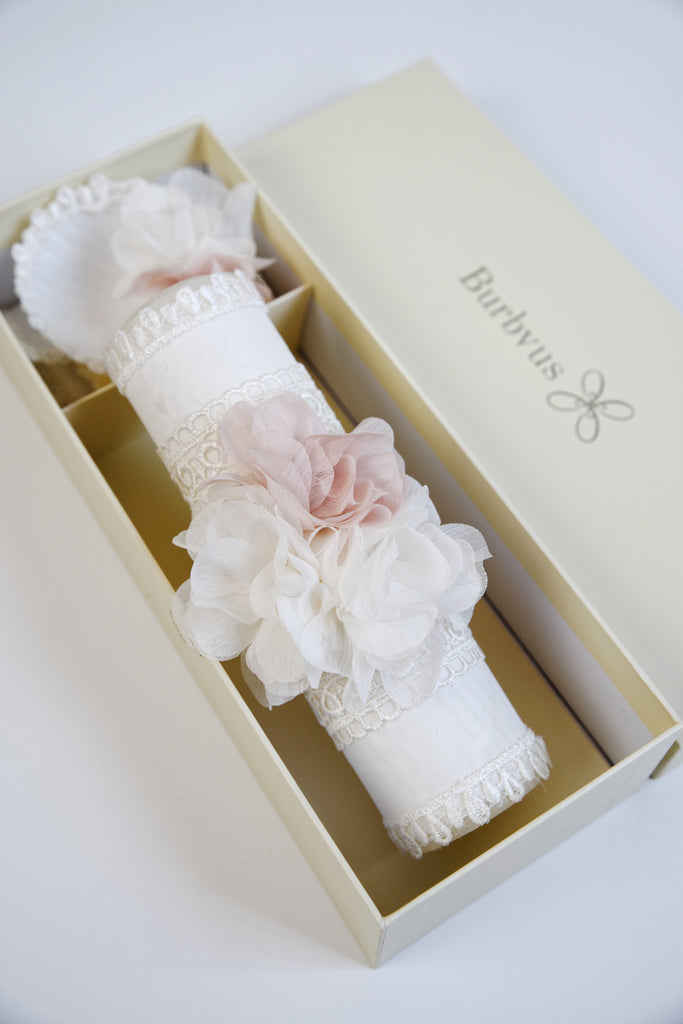 Make your baby’s baptism a truly unforgettable moment with this elegant handmade baptism candle set.