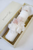 Each piece is lovingly hand-decorated and features charming pink floral details in soft light rose tones, adding a sweet and meaningful touch to your ceremony.