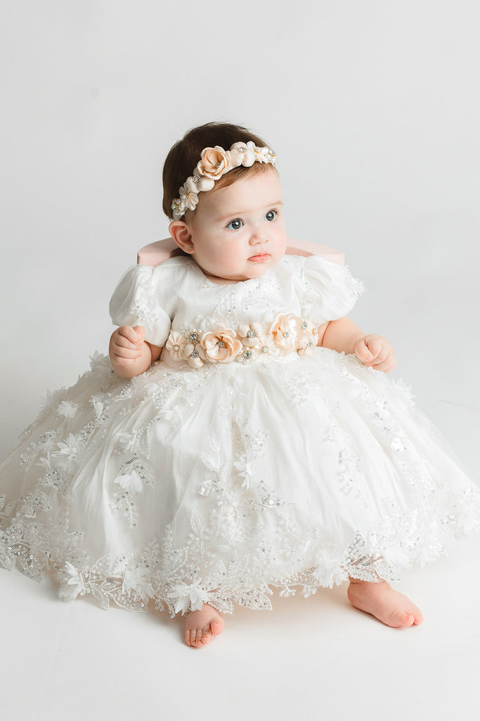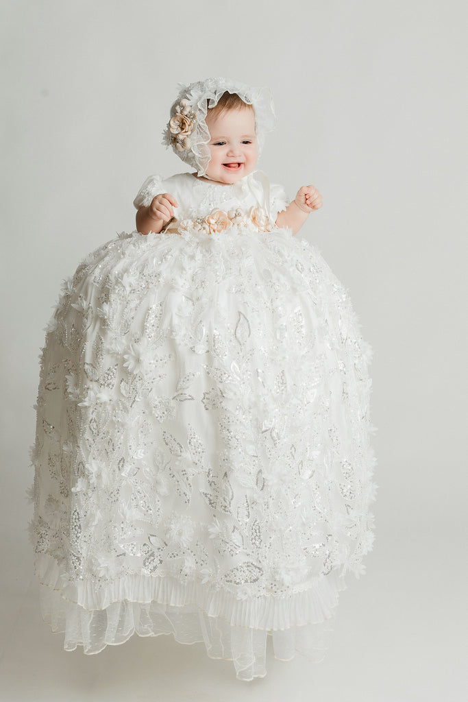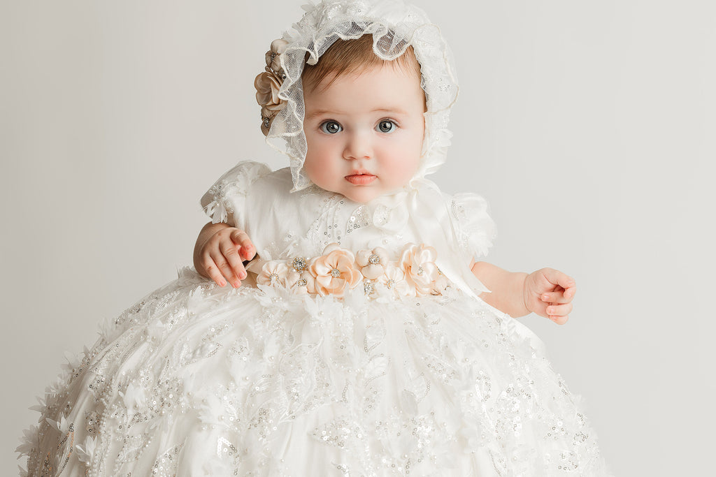 A timeless christening gown, perfect for baptisms and special occasions. Designed to be cherished and passed down to future generations.
