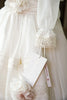 This beautiful gown features delicate lace, hand-embroidered details, and an elegant finish.
